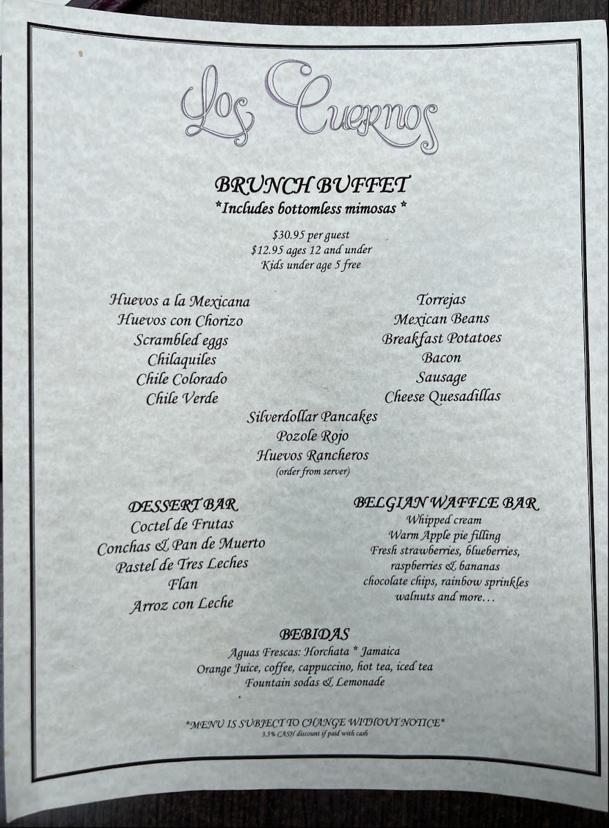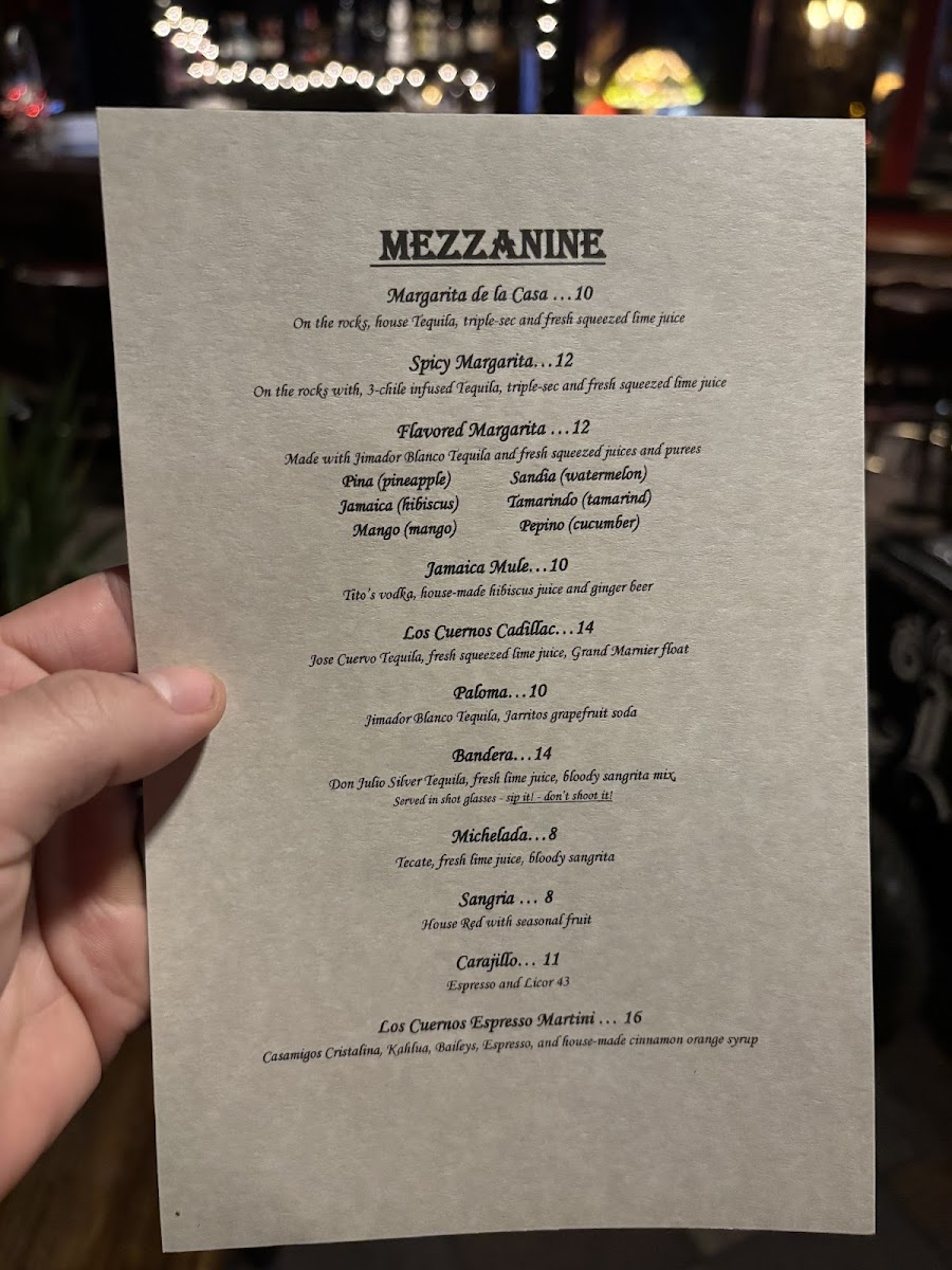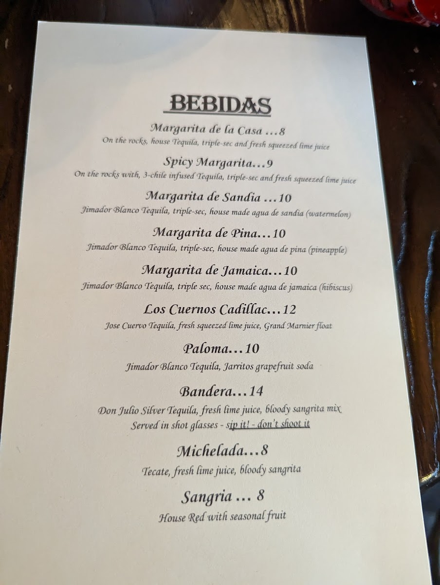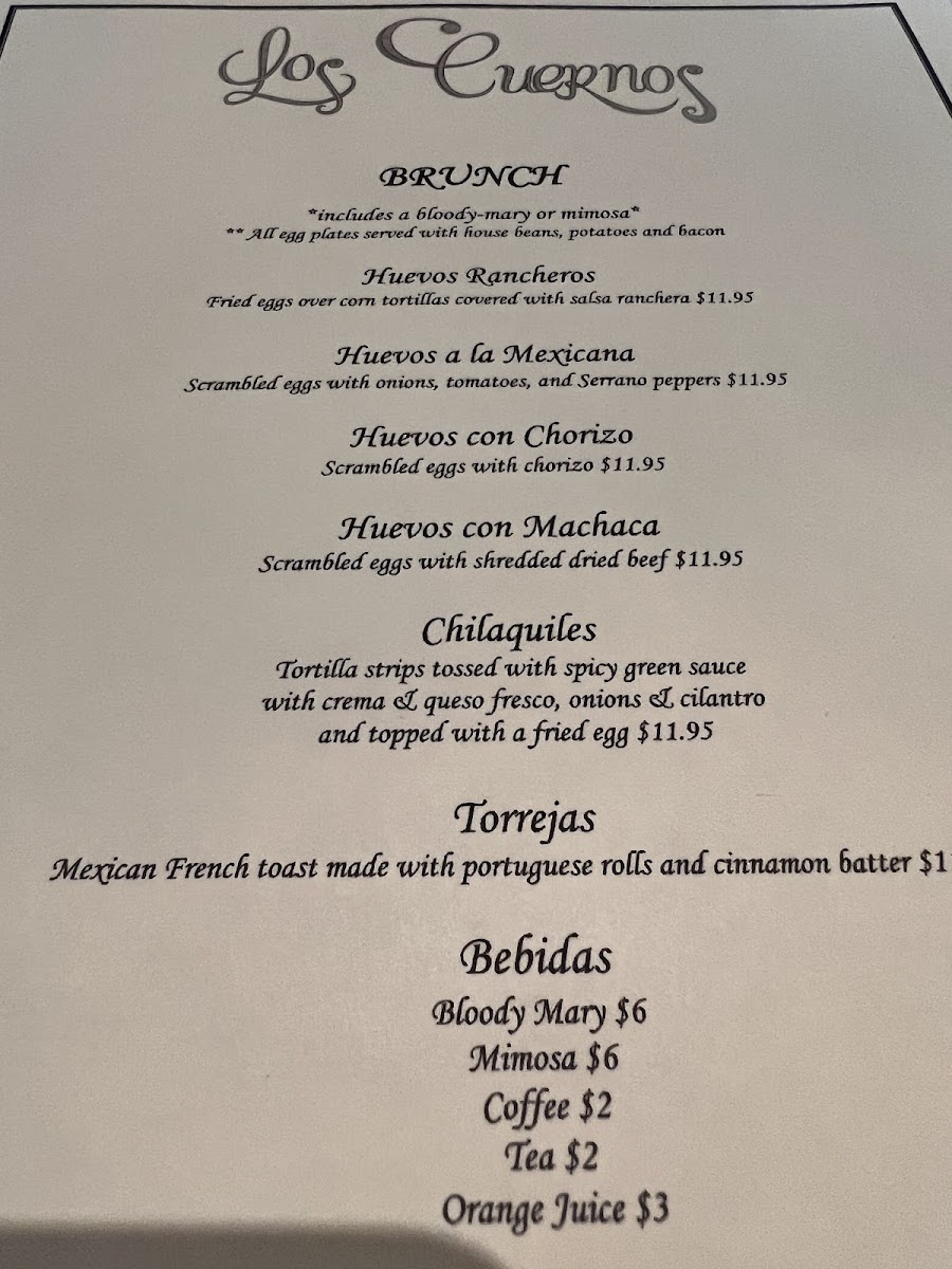 For those looking to quench their thirst, Los Cuernos serves a range of refreshing beverages, including Jarritos and traditional Mexican **Agua De Horchata**, each $4.00. Sip on these delightful drinks as you enjoy your meal, further enhancing the vibrant Mexican dining experience.